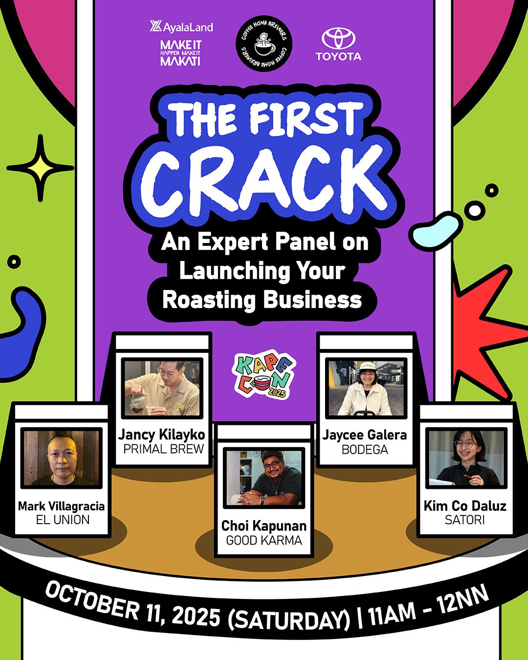 11:00 AM - 12:00 PM | ESPRESSO THE FIRST CRACK: An Expert Panel on Launching your Roasting Business FEATURING: Mark Villagracia, El Union Jancy Kilayko, Primal Brew Choi Kapunan, Good Karma Jaycee Galera, Bodega Kim Co Daluz, Satori |