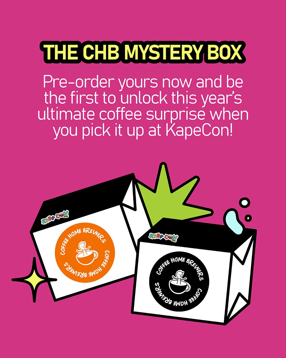 The CHB Mystery Box is a curated collection of coffee, coffee gear, and coffee lovers merch. Each box contains beans, shirts, accessories, and other items from our brand partners. PRE-ORDER NOW and claim at the KapeCon 2025 event!