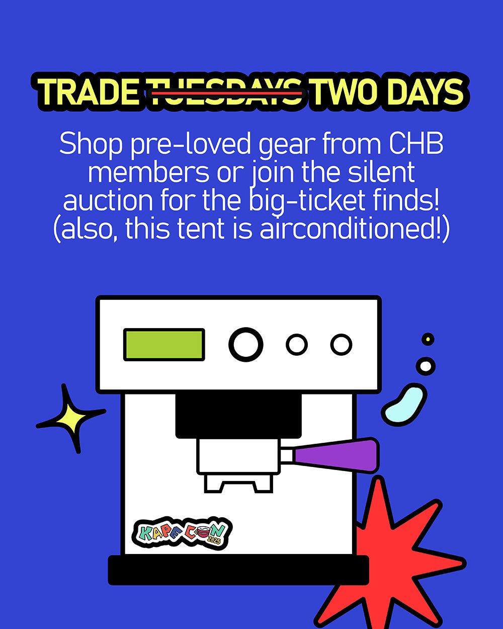 Trade Two Days is the official marketplace and swap meet of Kapecon 2025, designed to give Coffee Home Brewers (CHB) members the opportunity to sell or auction their coffee-related equipment and accessories.